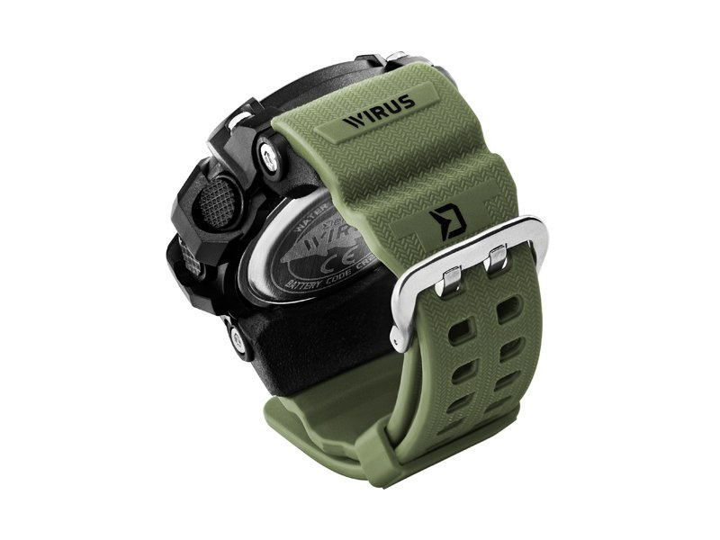 Gumová řemínka jsou na dotek velmi příjemné a také délkově nastavitelné v široké škále. To zaručuje že sednou na zápěstí jakékoli tloušťky. Řemínky jsou navržena v tmavě zelené barvě čímž ideálně zapadnou do přírodního prostředí, aniž by byly rušivým elementem. Samotné tělo hodinek je černé a masivní, vyznačuje se excelentní odolností vůči mechanickému poškození.