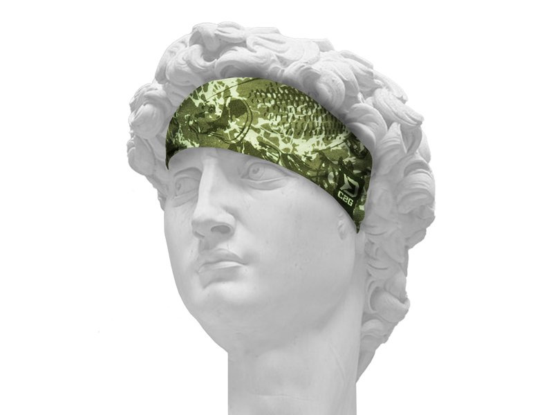 Multifunkční šátek s jedinečným kamuflážovým designem, který spojuje prvky kaprařské bižuterie se siluetami samotných kaprů.