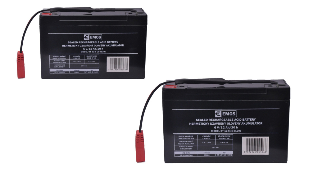 Sada dvou olověných akumulátorů 6V / 12 AH pro starší modely zavážecí lodičky Carp Scout.