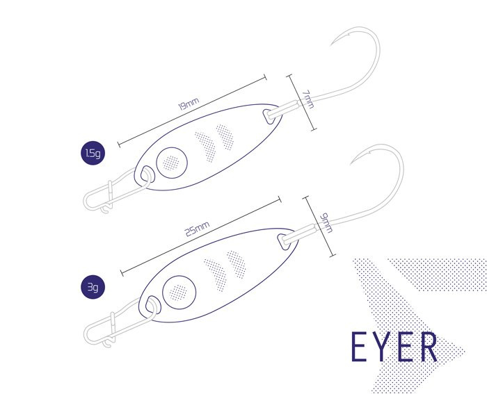 Plandavky série Delphin EYER jsou ideálními umělými nástrahami pro revíry typu Trout Area. Jejich tělo je vyrobeno ze zinkové slitiny. Jsou vybaveny kvalitním jednoháčkem BOMB! HardLure s protihrotem a karabinkou FASTLOCK MICRO SNAP, které jsou zárukou, že o svůj úlovek nepřijdete. Kromě pstruhů nimi nepohrdnou ani menší dravé ryby na jezerech či vodních tocích. To, že jsou velmi lákavé a dravci se jimi nechají snadno vyprovokovat, je vidět už na první pohled. Plandavky EYER jsou osazeny poměrně velkým umělým očkem, které dokonale imituje živou nástrahu.