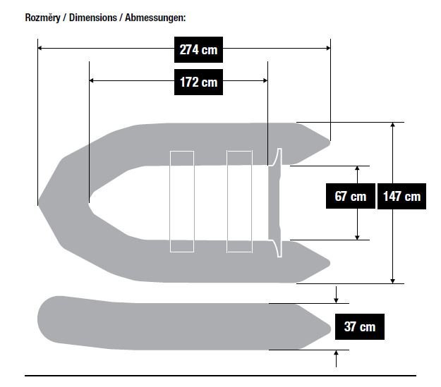 Počet komor: 3 + nafukovací kýl